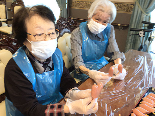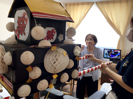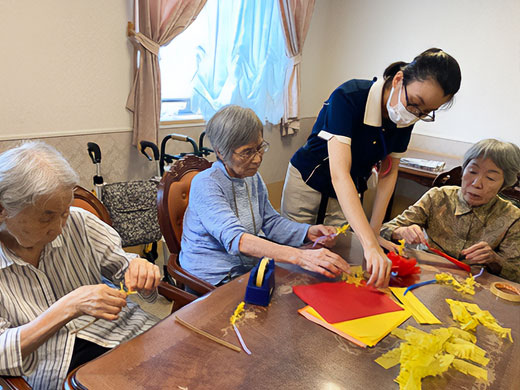 夏祭りの開催に向けて、職員だけではなく入居者様も一緒に準備に参加してくださいました。