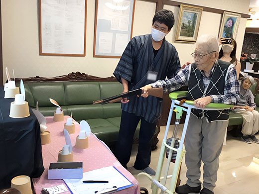さらに人気だったのが射的です。的を狙って真剣な表情を浮かべながらも、命中した瞬間には満面の笑みが広がり周囲から歓声があがりました。