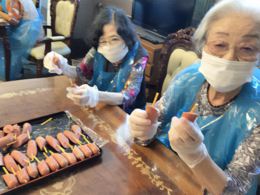 当日は職員が焼いたフランクフルトを召し上がられ「美味しい」と大変好評でした。