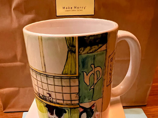 今、家にはマグカップや絵、キーホルダーなど、いろいろな表情の猫グッズが並んでいます。