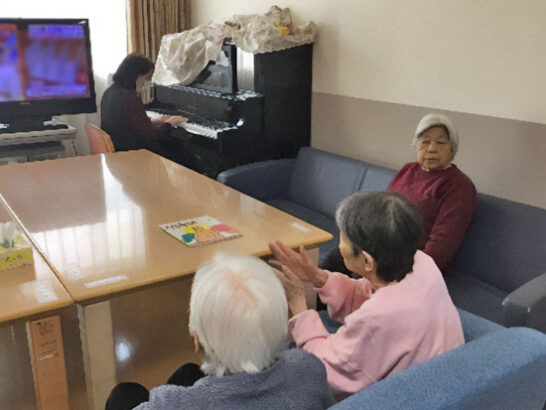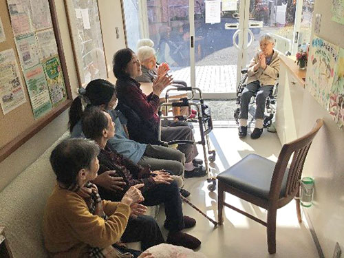 どなたかが「ここはどこ?」「訳が分からん!」「息子は先に帰ってしまったの?」など、不安になったり、寂しさを感じられた時は、誰からともなく歌を歌い始めます。懐かしい童謡をひと通り歌う頃には、寂しさや悲しさを少しの間だけ忘れることができます。
